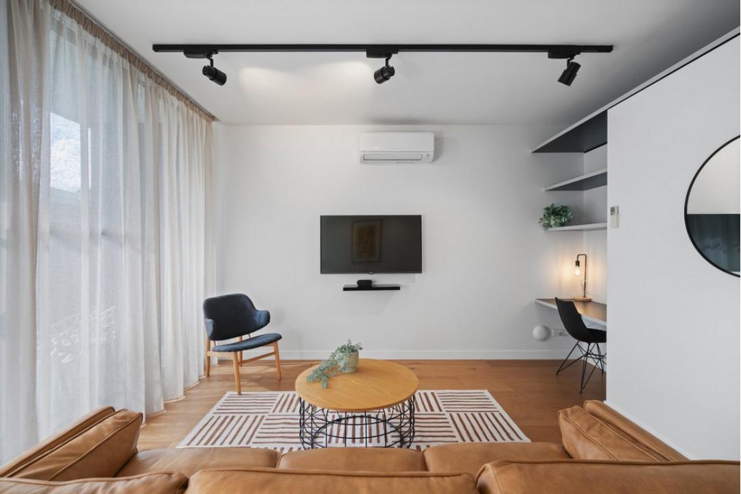 Our spacious one bedroom apartments have a fully equipped kitchen with Miele appliances, washing machine & dryer, 50 inch smart TVs, air conditioning, premium bedding and coffee machines.